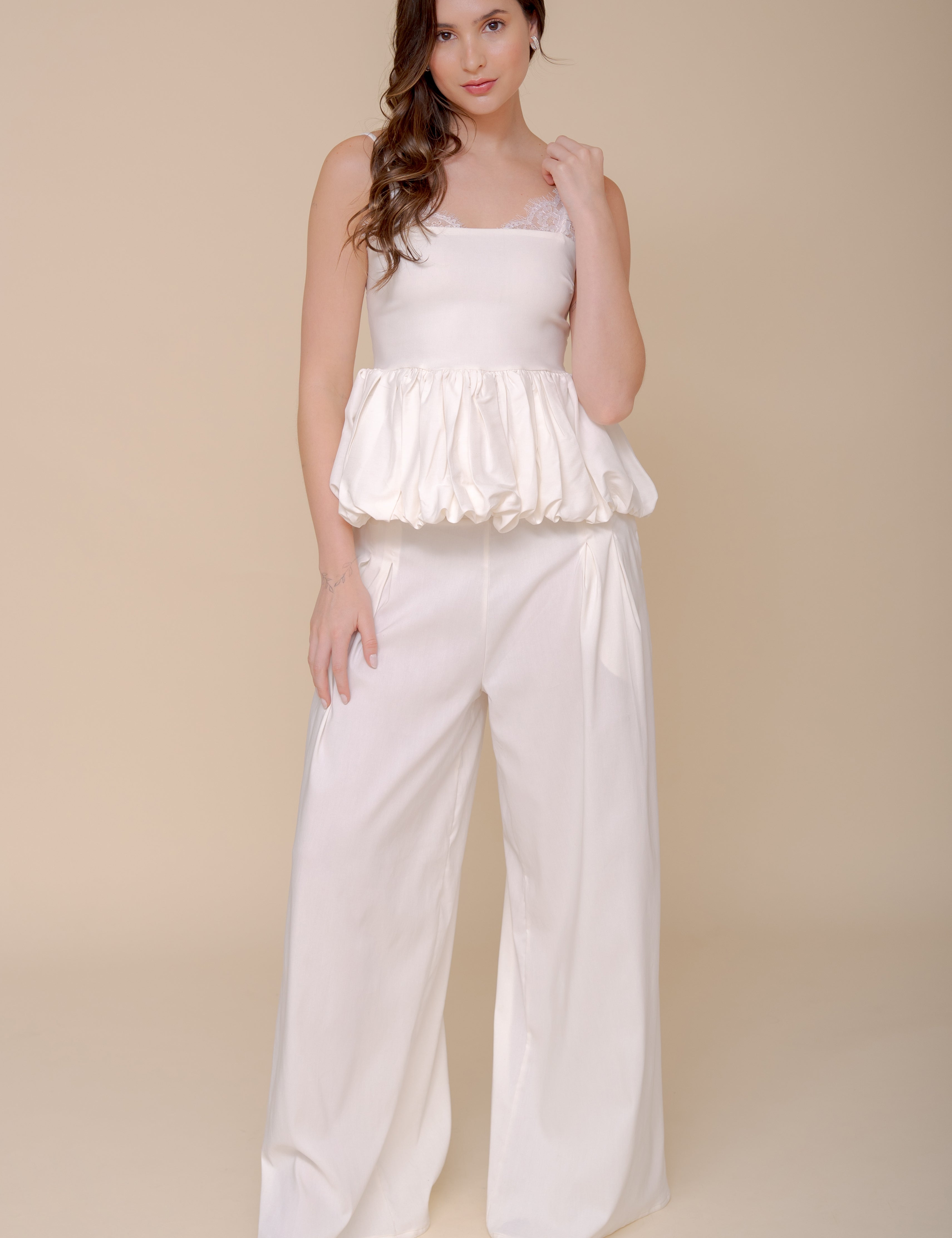 La tela es espectacular y es super fresco 🤍 Es eso que tu te quisieras poner todos los días, a demás cada prenda por separado te da muchas opciones de uso.